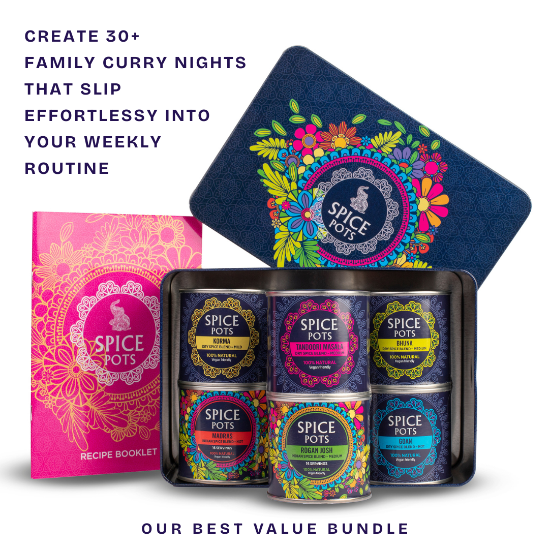 And here’s the best part… this kit gives you the entire Spice Pots experience in one beautifully cost-saving bundle—every blend, every flavour, every mood of curry night—without the extra cost or hassle of buying them individually.  That’s 30+ curry nights—for less than the cost of two takeaways.